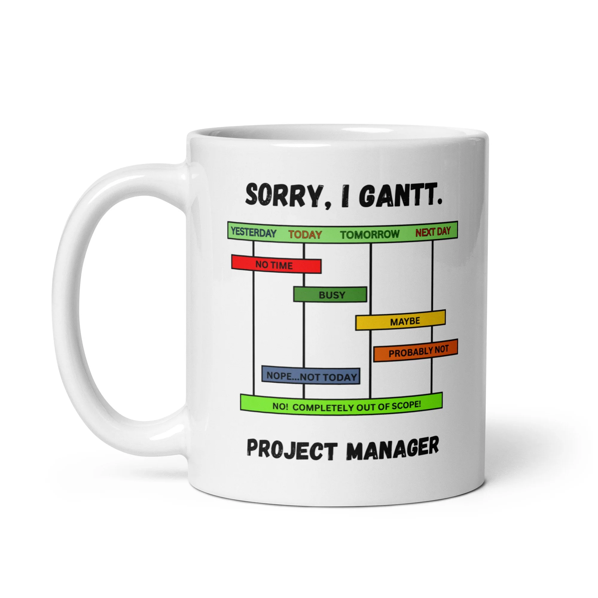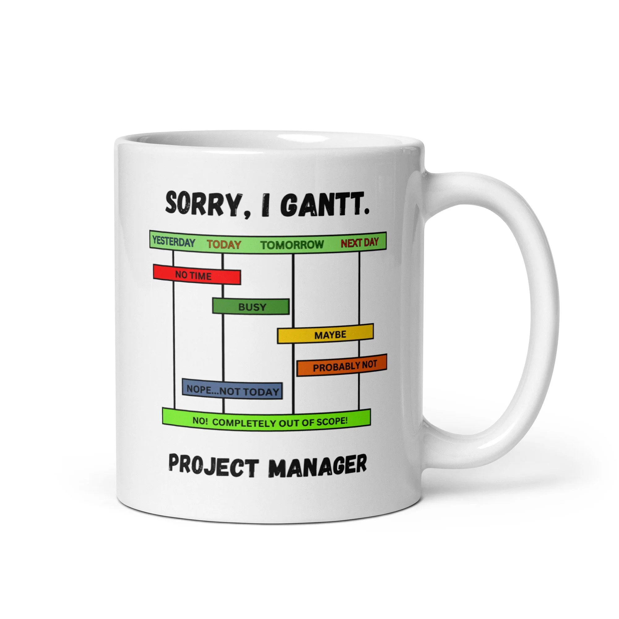 Perfect for coffee-fueled planning sessions, early stand-ups, and those moments when someone asks if a deadline can just magically move. Keep it on your desk as a gentle reminder that charts exist for a reason—and so do boundaries.